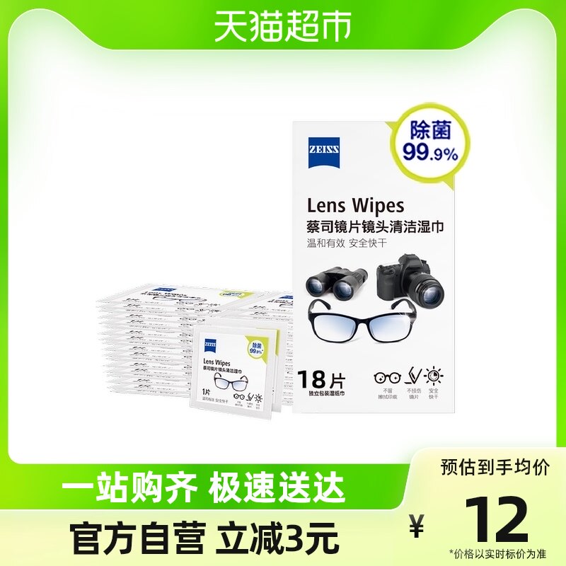 ,【下单立减5.1】蔡司擦镜纸眼镜片电脑屏幕6片*3包,百年蔡司不仅精于光学研发,更懂得镜片镜头的‘健康’之道。,ZEISS蔡司擦镜纸眼镜片电脑屏幕6片*3包镜头清洁湿巾除菌,上海天猫超市,蔡司擦镜纸眼镜片电脑屏幕6片*3包,镜头纸_镜头布/3C数码配件